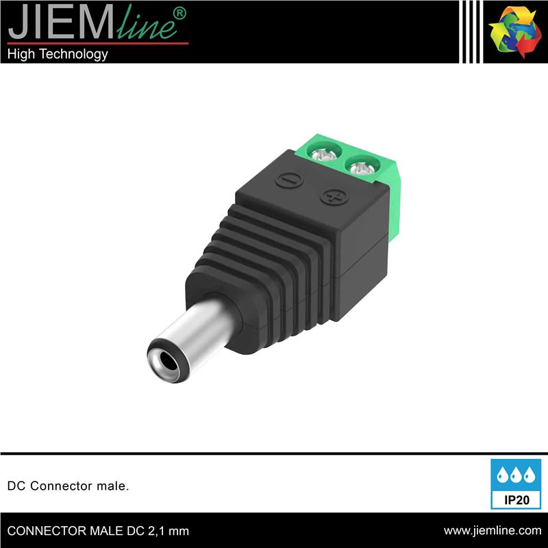 CONECTOR MALE DC, de calidad profesional, te permitirá conectar tus tiras LED a tu fuente de alimentación en zonas interiores.