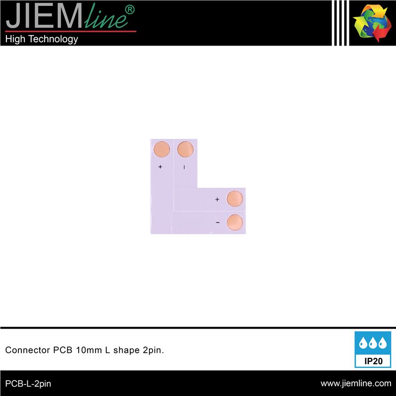 CONECTOR 2pin PCB (L), de calidad profesional, te permitirá conectar tus tiras LED monocolor en el interior de la perfilería de aluminio para usar en tus instalaciones de iluminación en zonas interiores.