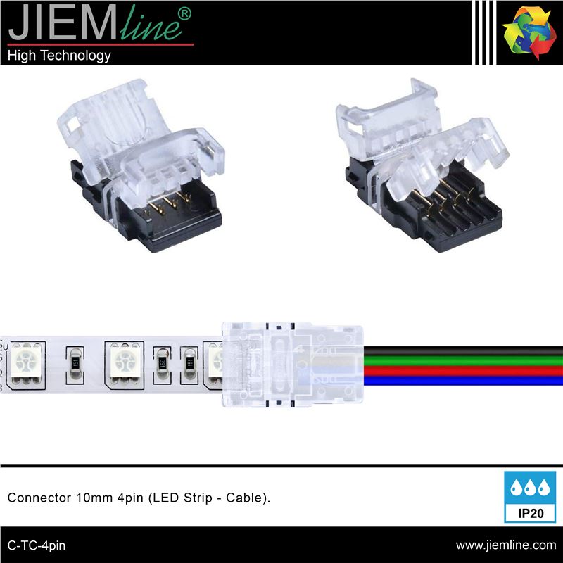 CONECTOR 4pin TIRA LED-CABLE, de calidad profesional, te permitirá conectar tus tiras LED RGB en el interior de la perfilería de aluminio para usar en tus instalaciones de iluminación en zonas interiores.