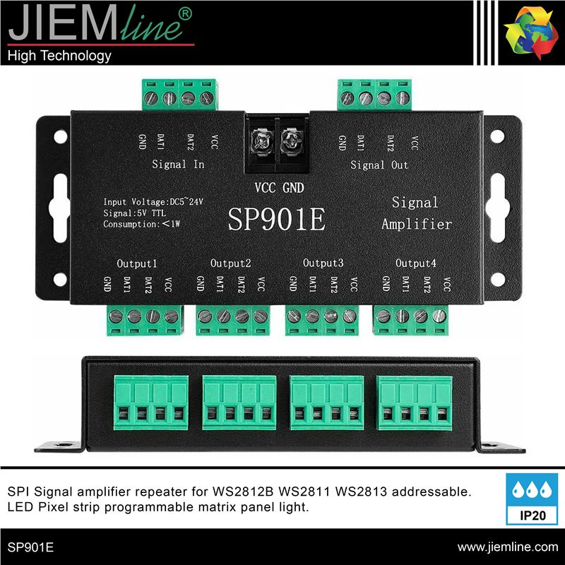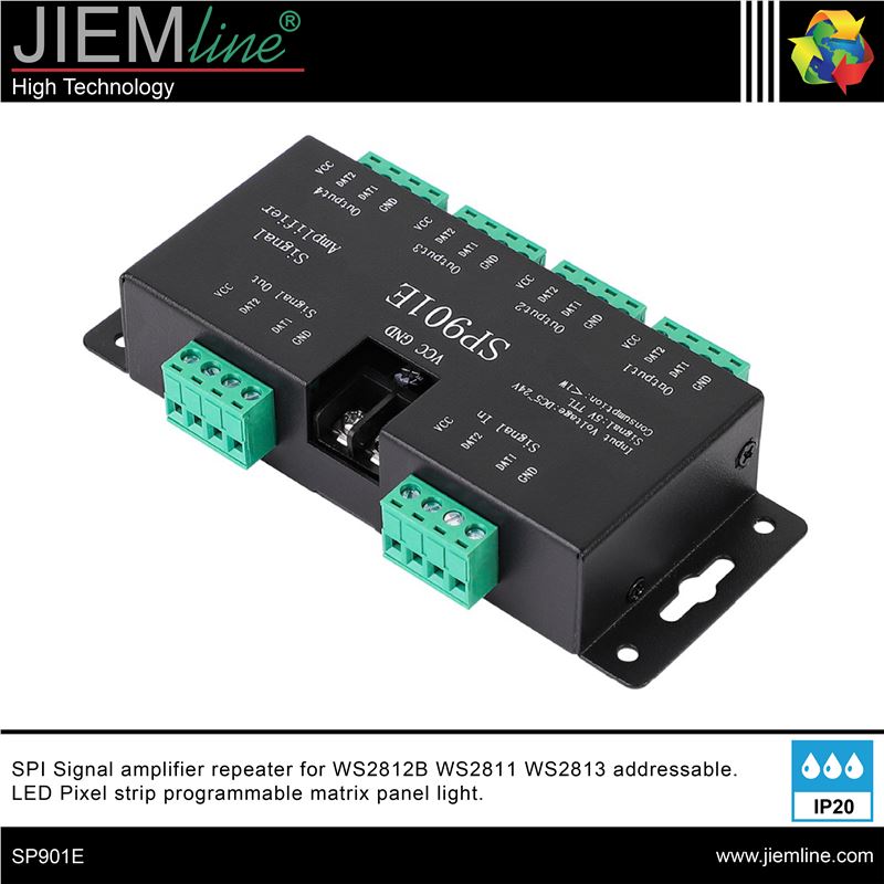AMPLIFICADOR DE SEÑAL DIGITAL SPI, de calidad profesional, este producto te permitirá amplificar la señal digital SPI de todos tus proyectos de iluminación LED en zonas interiores.