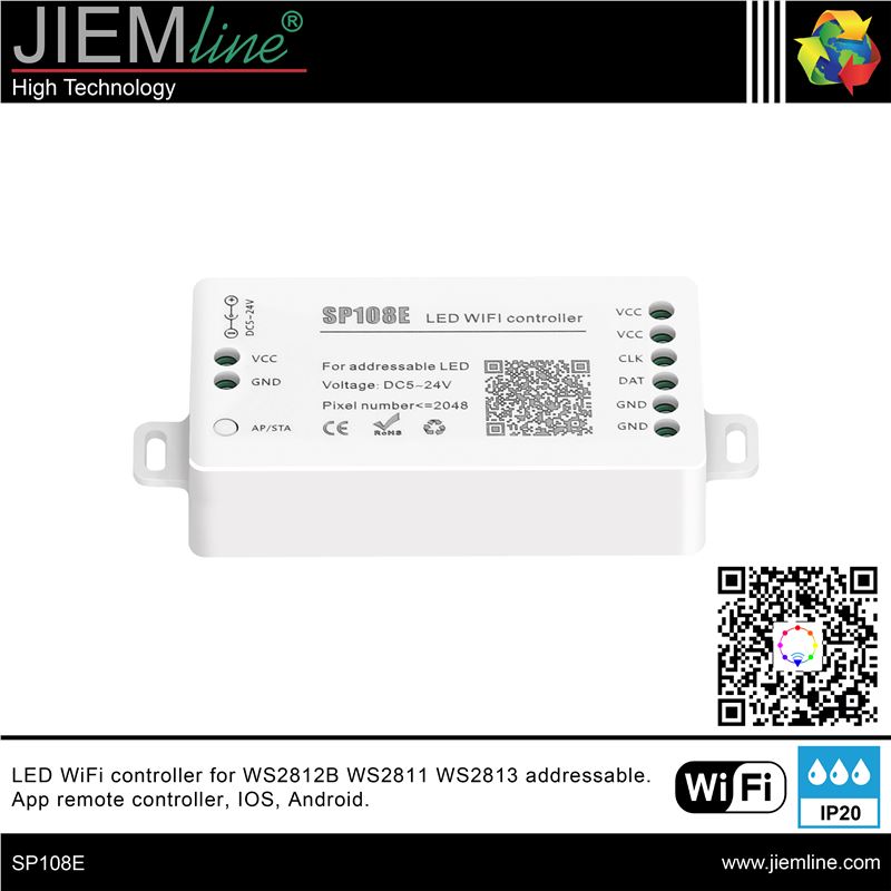 CONTROLADOR DIGITAL SPI WIFI 2,4 Ghz, de calidad profesional, con la App LED Shop y este producto te permitirá controlar productos digitales de todos tus proyectos de iluminación LED en zonas interiores.