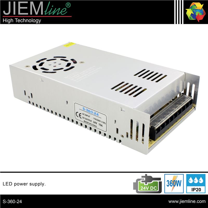 FUENTE ALIMENTACIÓN 360W 24V DC IP20, de calidad profesional que te permitirá conectar y alimentar en zonas interiores tus proyectos de iluminación LED.