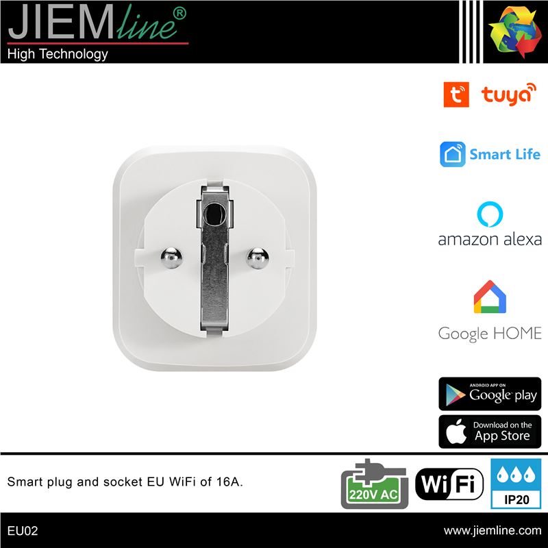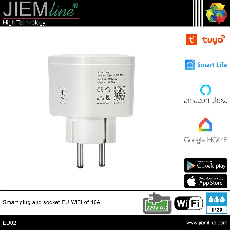 ENCHUFE EU INTELIGENTE WIFI 16A, de calidad profesional, con este producto podrá controlar todos los dispositivos conectados a él, como encender y apagar, programar un horario de encendido y apagado, o controlarlo por voz, además de una protección contra sobrecarga, más duradera y segura.