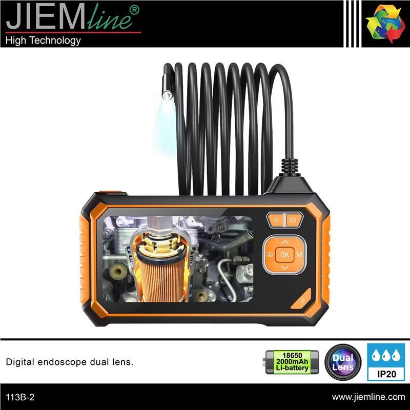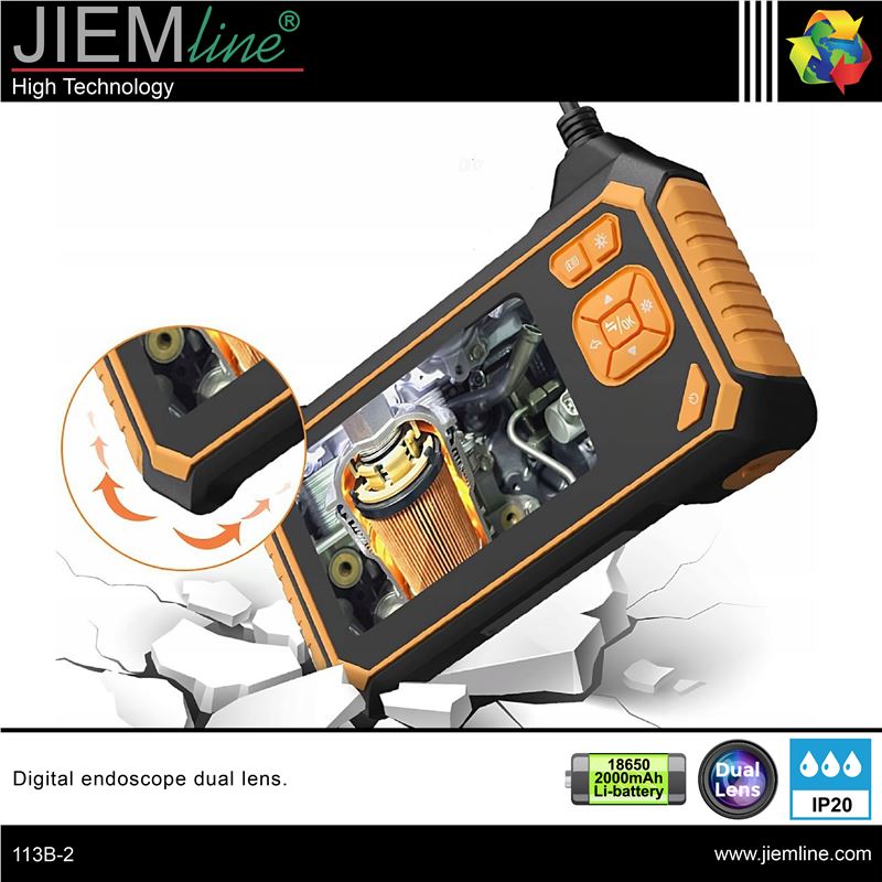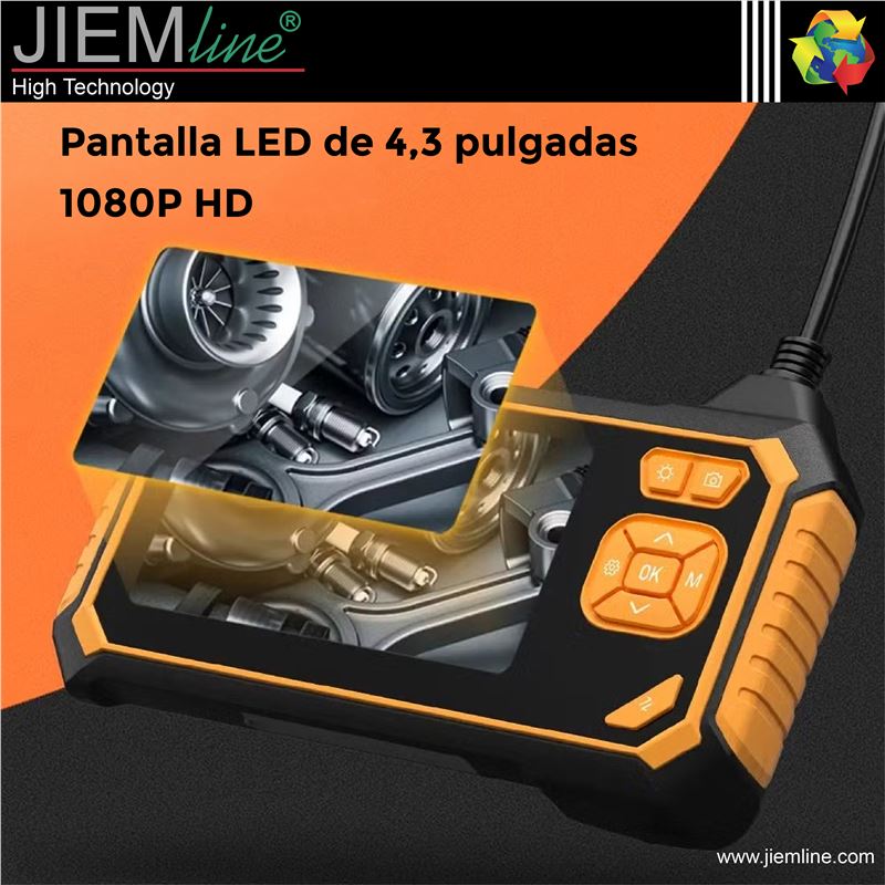 ENDOSCOPIO DIGITAL, de calidad profesional, este instrumento es una buena herramienta para la inspección de lugares inaccesibles como tuberías, conductos eléctricos, etc., dispone de un cable semirrígido con dos cámaras, una frontal y otra lateral, ambas con luz LED, gracias a su batería de 18650 2000mAh dispone de hasta 3 horas de autonomía, se pueden guardar imágenes JPG y videos AVI en una tarjeta de memoria de hasta 64 GB, también se puede visualizar en un ordenador.