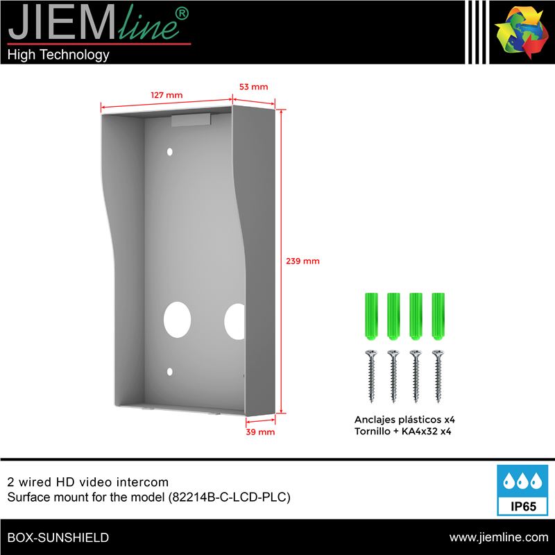 CAJA PARASOL ESTACIÓN EXTERIOR 82214B-C-LCD-PLC-S, de calidad profesional, fabricada en metal color plata, ideal como parasol de la estación exterior de videoportero BUS 2 hilos del modelo 82214B-C-LCD-PLC-S.
