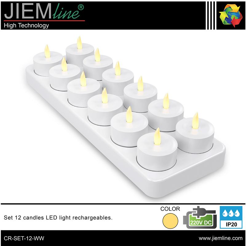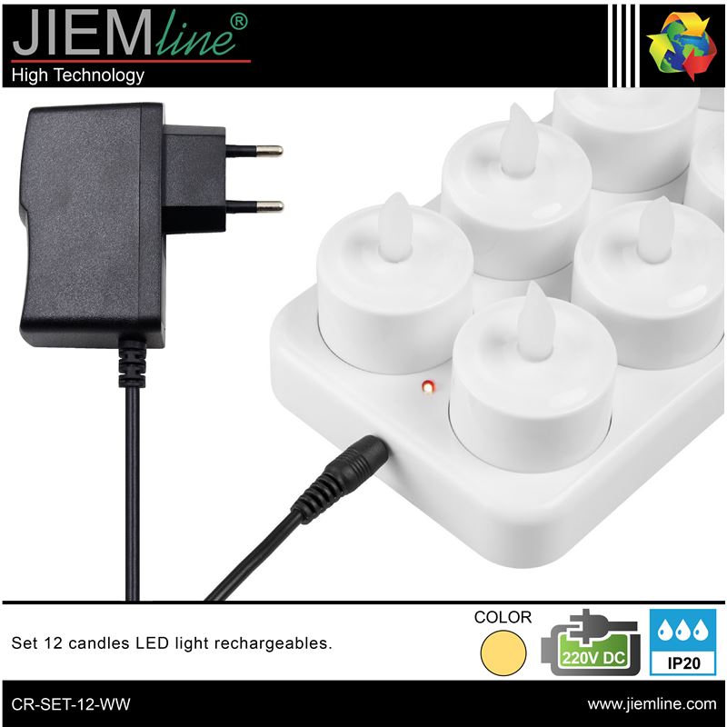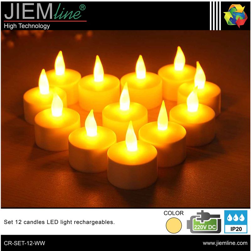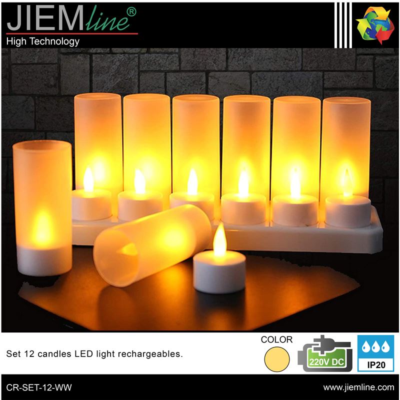 SET 12 VELAS RECARGABLES, de calidad profesional, es ideal para decorar e iluminar los momentos más íntimos y románticos en épocas de Navidad u otros eventos especiales, integrándose perfectamente en los ambientes que desees, este producto tiene un efecto de luz en blanco cálido imitando a la llama de las velas, gracias a su base y su adaptador de corriente podrás recargar hasta 12 velas de una sola vez. Este producto LED es de bajo consumo.