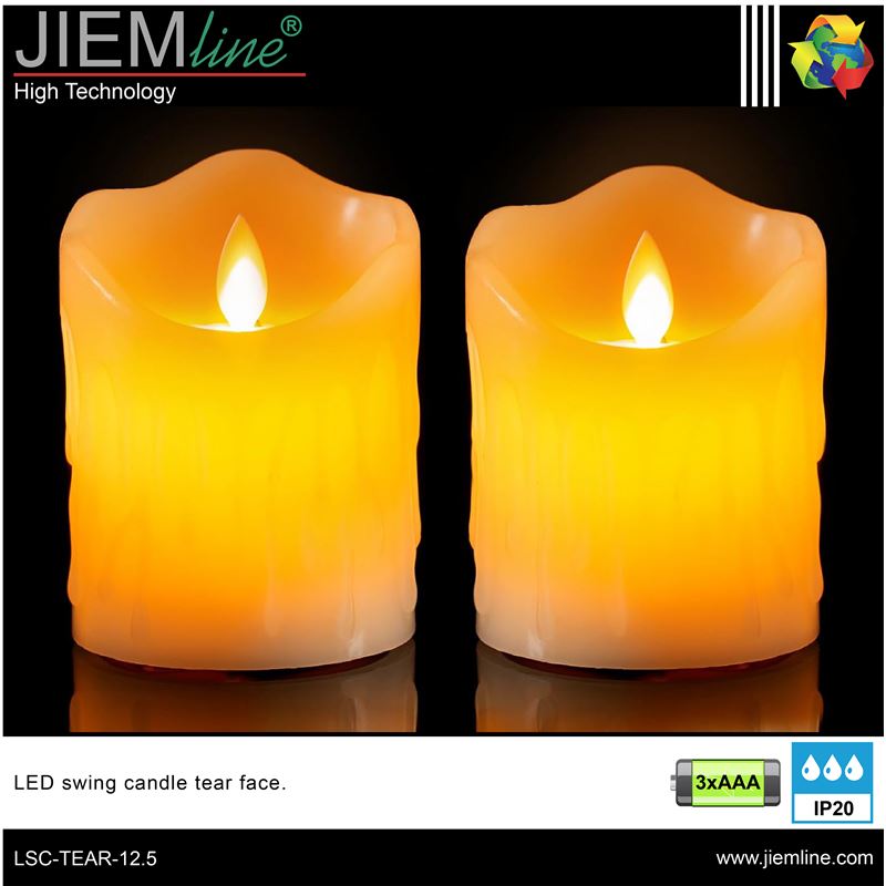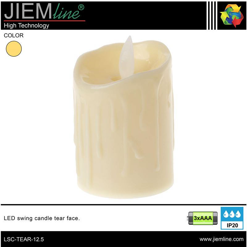 VELA LED SWING TEAR FACE 12,5 cm, de calidad profesional, es ideal para decorar e iluminar los momentos más íntimos y románticos en épocas de Navidad u otros eventos especiales, integrándose perfectamente en los ambientes que desees, este producto tiene un efecto de luz en movimiento en blanco cálido imitando a la llama de las velas. Este producto LED es de bajo consumo.