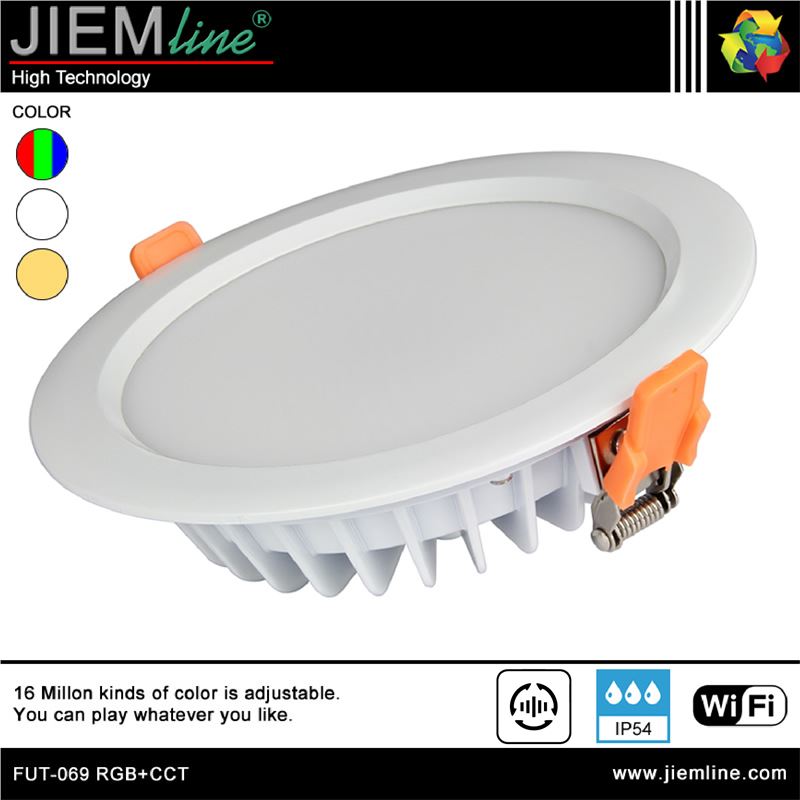 DOWNLIGHT LED RGB+CCT 15W WIFI 2,4 Ghz, de calidad profesional, ideal para iluminar tus proyectos más exigentes, gracias a su tecnología WiFi te permitirá controlar y seleccionar a distancia con su control remoto o desde cualquier dispositivo móvil, el brillo, el ajuste CCT, el ajuste RGB hasta 16 millones de colores, o efectos lumínicos de gran belleza, integrándose perfectamente en los ambientes que desees. Este producto LED es de bajo consumo.