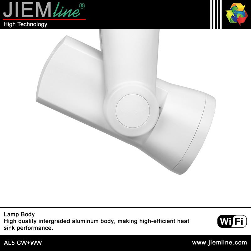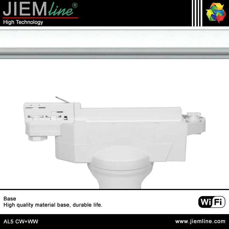 FOCO LED CARRIL TRIFÁSICO CCT 25W WIFI 2,4 Ghz, de calidad profesional, ideal para iluminar tus proyectos más exigentes, gracias a su tecnología WiFi te permitirá controlar y seleccionar a distancia con su control remoto o desde cualquier dispositivo móvil, el brillo, el ajuste CCT, apto para ser usado en escaparates, comercios y museos, integrándose perfectamente en los ambientes que desees gracias a su rotación horizontal de 350º y su rotación vertical de 180º. Este producto LED es de bajo consumo.