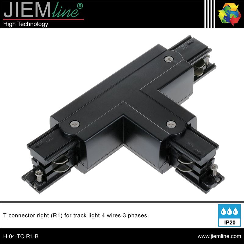UNIÓN T CARRIL TRIFÁSICO NEGRO (R1), de calidad profesional, ideal para unir el carril trifásico YZ6404-1M-B / YZ6404-2M-B.