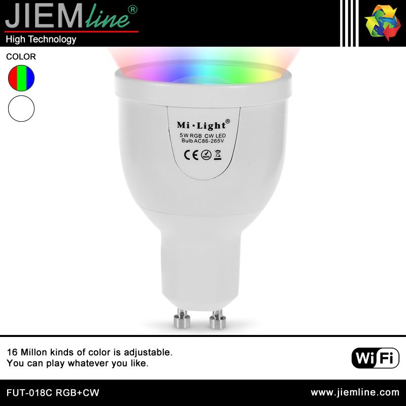 LÁMPARA LED GU10 RGB+CW, de calidad profesional, ideal para iluminar tus proyectos más exigentes, gracias a su tecnología WiFi te permitirá controlar y seleccionar a distancia con su control remoto o desde cualquier dispositivo móvil, el brillo, el ajuste RGB hasta 16 millones de colores, o efectos lumínicos de gran belleza, integrándose perfectamente en los ambientes que desees. Este producto LED es de bajo consumo.