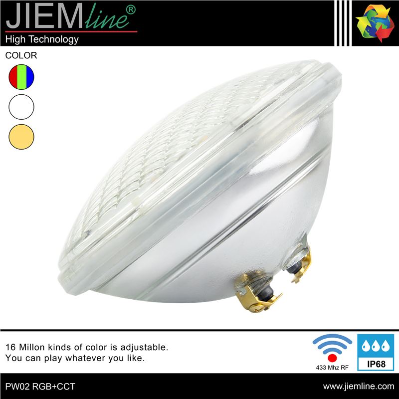 LÁMPARA LED PAR56 RGB+CCT, de calidad profesional, ideal para iluminar tus proyectos más exigentes, gracias a su tecnología RF 433Mhz te permitirá controlar y seleccionar a distancia con su control remoto o desde cualquier dispositivo móvil, el brillo, el ajuste CCT, el ajuste RGB hasta 16 millones de colores, o efectos lumínicos de gran belleza, integrándose perfectamente en los ambientes que desees. Este producto LED es de bajo consumo.