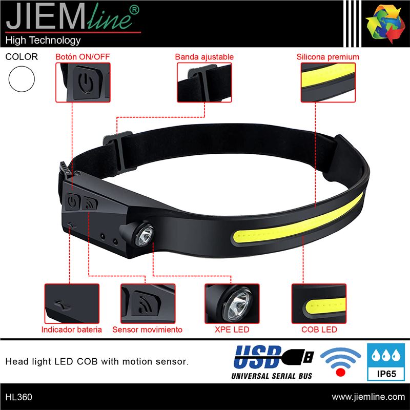 LINTERNA CABEZA SENSOR MOVIMIENTO LED XPE / COB, de calidad profesional, ideal para iluminar de noche o en zonas oscuras para el trabajo, en la pesca, de camping o haciendo senderismo, etc..., podrás cambiar el tipo de brillo pasando la mano por delante del sensor de movimiento. Este producto LED es de bajo consumo.