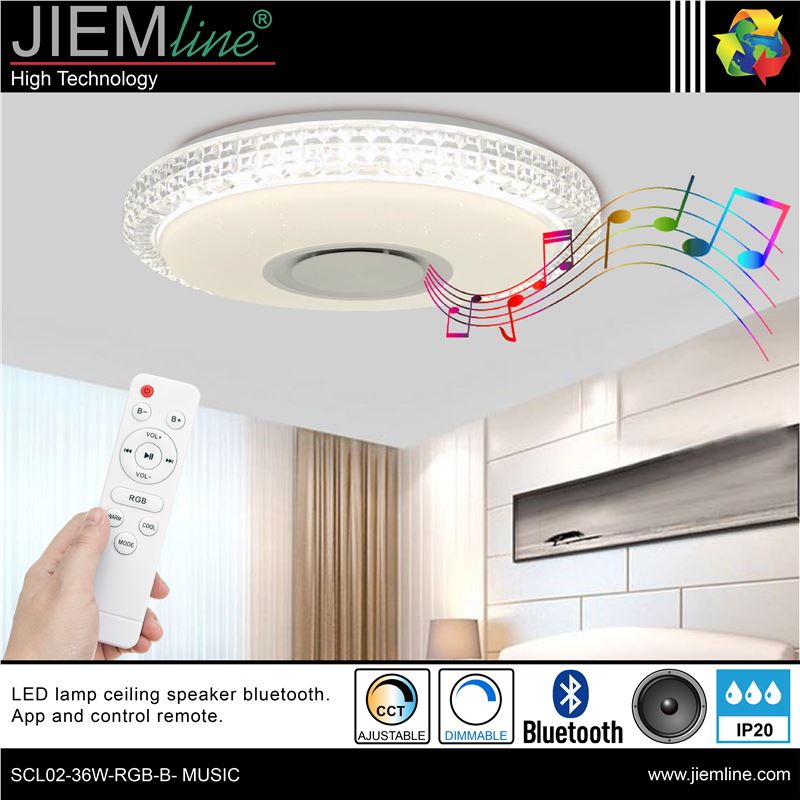 PLAFON LED TECHO RGB+CCT 36W BLUETOOTH, de calidad profesional, ideal para iluminar tus proyectos más exigentes, gracias a su tecnología bluetooth te permitirá controlar y seleccionar a distancia con su control remoto o desde cualquier dispositivo móvil, el brillo, el ajuste CCT, el ajuste RGB hasta 16 millones de colores, o efectos lumínicos de gran belleza, integrándose perfectamente en los ambientes que desees. Además podrás reproducir tu música favorita gracias a su altavoz integrado. Este producto LED es de bajo consumo.