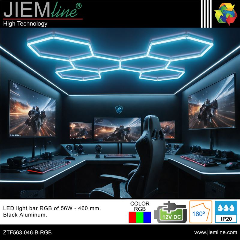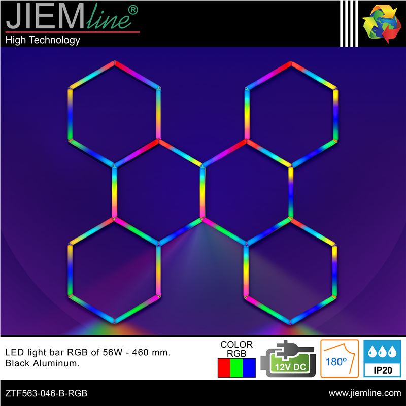 KIT HEXAGONO LED RGB 56W BARRAS 460 mm, de calidad profesional, ideal para iluminar tus proyectos más exigentes, incluye un controlador para que puedas usarlo con su control remoto o con U-light App, podrás reproducir multitud de efectos lumínicos e incluso puede funcionar al ritmo de tu música preferida, por lo que podrá integrándose perfectamente en los ambientes que desees. Este producto LED es de bajo consumo.