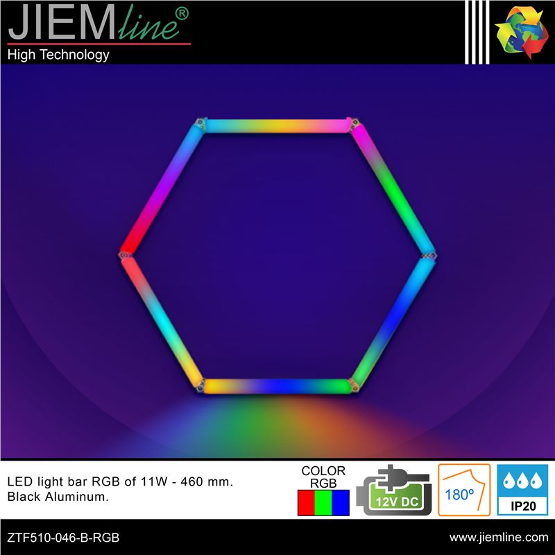 KIT HEXAGONO LED RGB 11W BARRAS 460 mm, de calidad profesional, ideal para iluminar tus proyectos más exigentes, incluye un controlador para que puedas usarlo con su control remoto o con U-light App, podrás reproducir multitud de efectos lumínicos e incluso puede funcionar al ritmo de tu música preferida, por lo que podrá integrándose perfectamente en los ambientes que desees. Este producto LED es de bajo consumo.