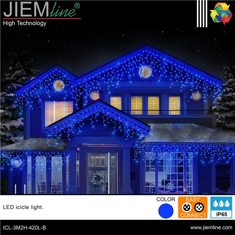ICICLE LED AZUL, de calidad profesional, ideal para cubrir fachadas, calles y plazas para colocar en épocas de Navidad u otros eventos especiales, conectándolo al controlador C-2100L conseguirás hasta 8 efectos lumínicos de gran belleza, integrándose perfectamente en los ambientes que desees. Este producto LED es de bajo consumo.