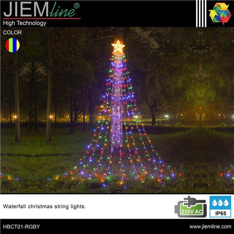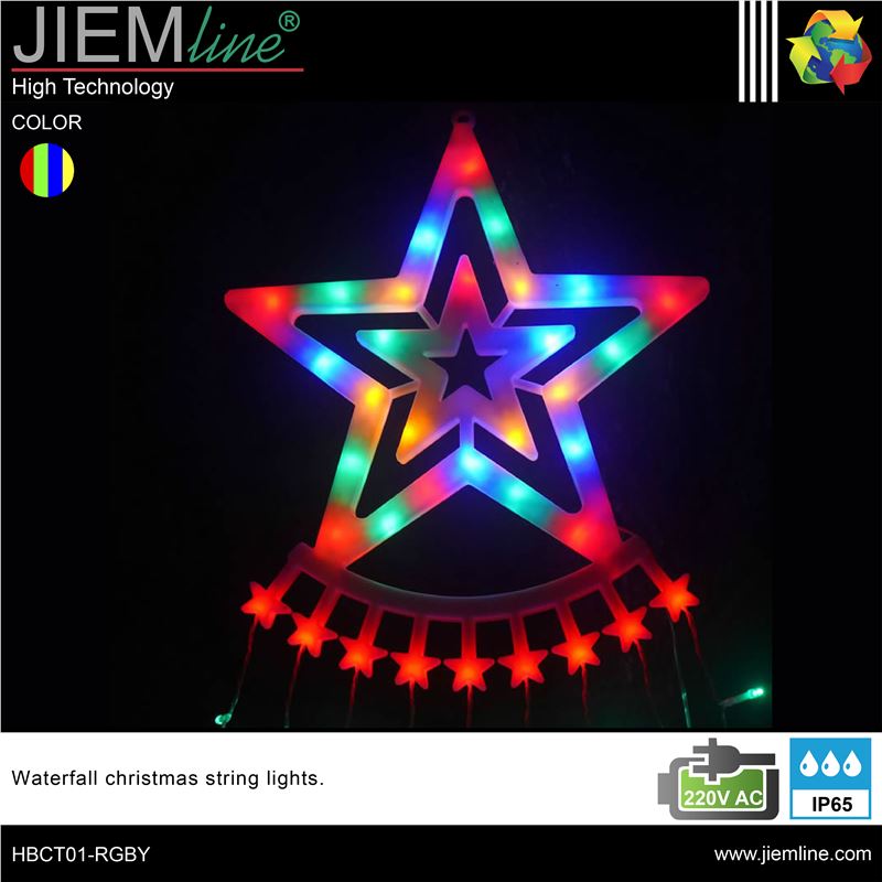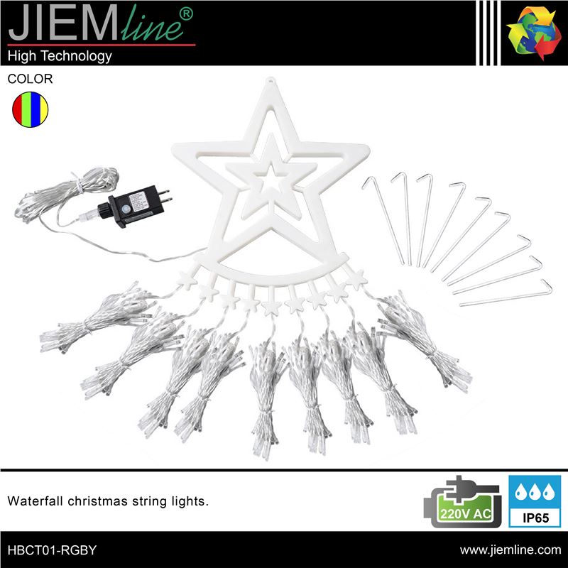 CASCADA + ESTRELLA LED RGBY, de calidad profesional, ideal para cubrir paredes y árboles para colocar en épocas de Navidad, gracias a su controlador incluido dispondrás de hasta 8 efectos diferentes de gran belleza, integrándose perfectamente en los ambientes que desees. Este producto LED es de bajo consumo.
