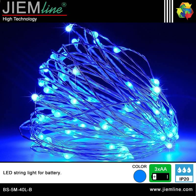 GUIRNALDA LED BATERIA AZUL, de calidad profesional, ideal para adornar jarrones, centros de mesa, etc, para colocar en épocas de Navidad u otros eventos especiales, de uso interior, se alimenta con 3 baterias AA, integrándose perfectamente en los ambientes que desees. Este producto LED es de bajo consumo.