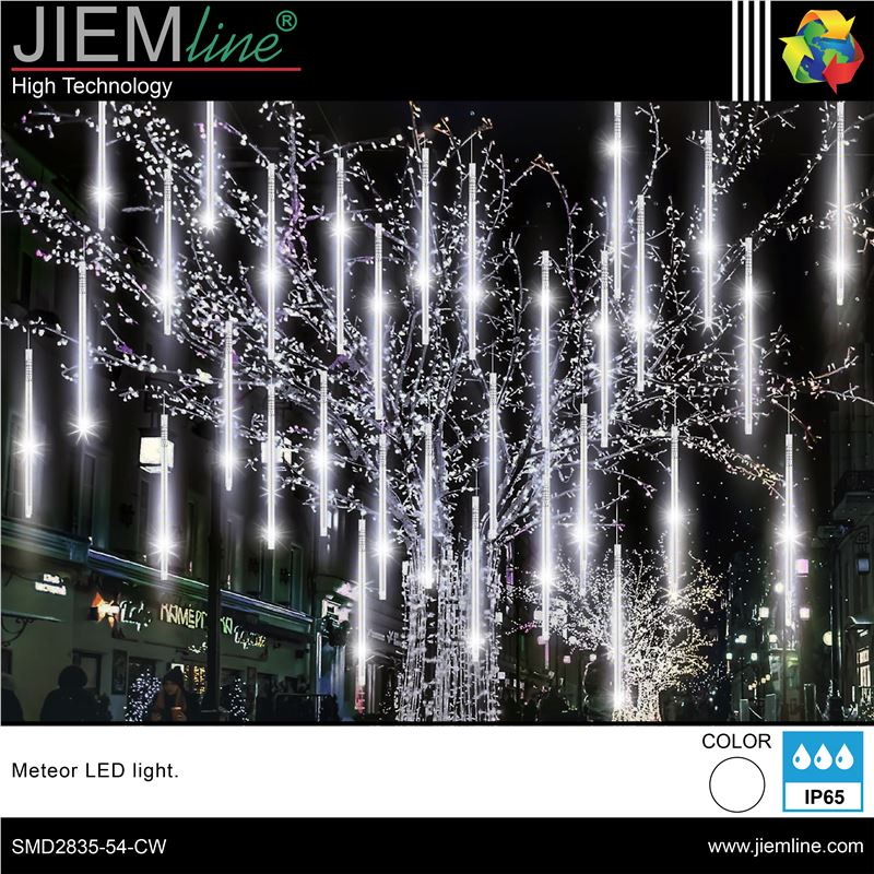 METEORITO LED BLANCO FRÍO, de calidad profesional, ideal para cubrir fachadas, calles y plazas para colocar en épocas de Navidad u otros eventos especiales, este producto reproduce rafagas de luz simulando a los meteoritos, creando efectos lumínicos de gran belleza, integrándose perfectamente en los ambientes que desees. Este producto LED es de bajo consumo.