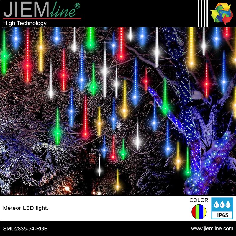 METEORITO LED RGB, de calidad profesional, ideal para cubrir fachadas, calles y plazas para colocar en épocas de Navidad u otros eventos especiales, este producto reproduce rafagas de luz simulando a los meteoritos, creando efectos lumínicos de gran belleza, integrándose perfectamente en los ambientes que desees. Este producto LED es de bajo consumo.
