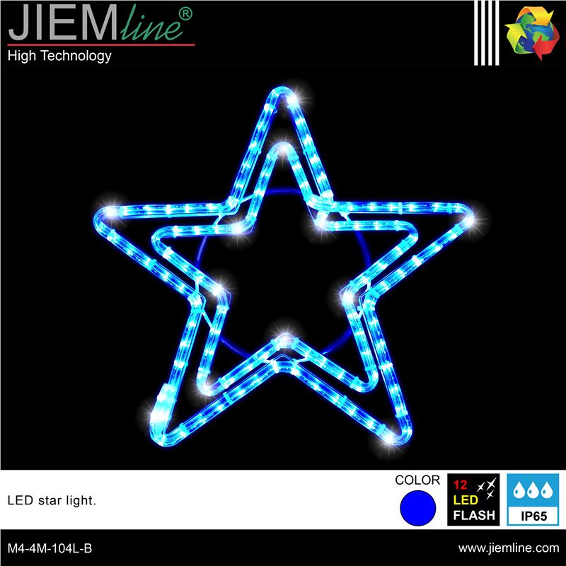ESTRELA 2D LED B, de calidad profesional, ideal para cubrir fachadas, calles y plazas para colocar en épocas de Navidad u otros eventos especiales, este producto tiene un color fijo en azul, también dispone de 12 LEDs flash blanco frío, creando efectos lumínicos de gran belleza, integrándose perfectamente en los ambientes que desees. Este producto LED es de bajo consumo.